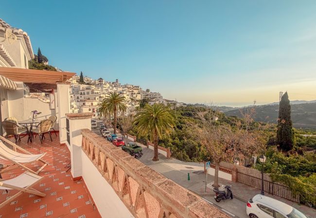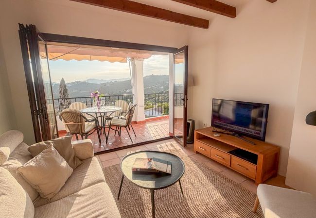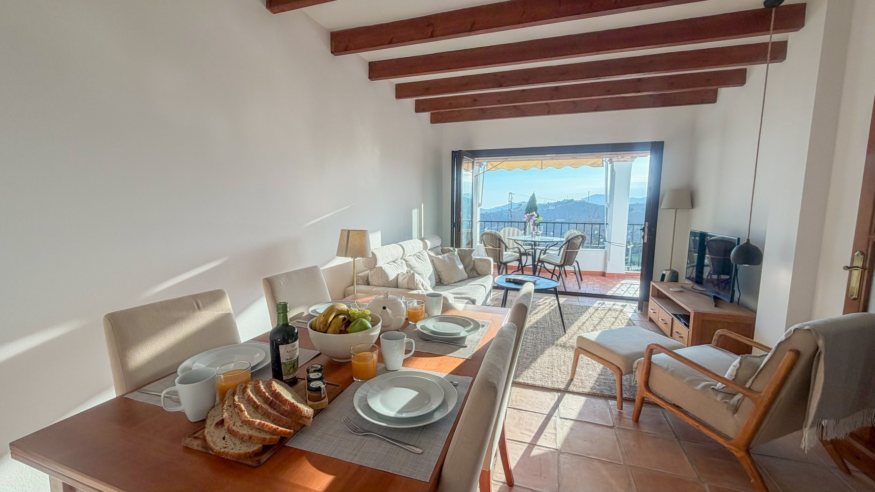 Disfruta de este luminoso apartamento con terraza privada en Avenida Carlos Cano, a un corto paseo del encantador casco antiguo de Frigiliana, tiendas y cafés. Relájate en la espaciosa zona de estar o cena al aire libre con hermosas vistas al pueblo, las montañas y el mar. Cuenta con una cocina totalmente equipada, 2 dormitorios cómodos (uno con baño en suite) y 2 baños. A solo 15 minutos en coche de Nerja y sus playas. No fumadores. ¡Reserva ahora y disfruta de la auténtica vida de pueblo!