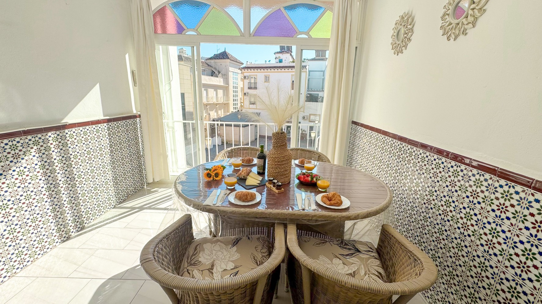 Apartamento de primera planta de 120 m2 en el centro de Nerja cerca de todo, a poca distancia del Balcón de Europa y la playa, solo a 2 minutos a pie, paseo fácil a todas las comodidades como restaurantes, bares, supermercados y tiendas.