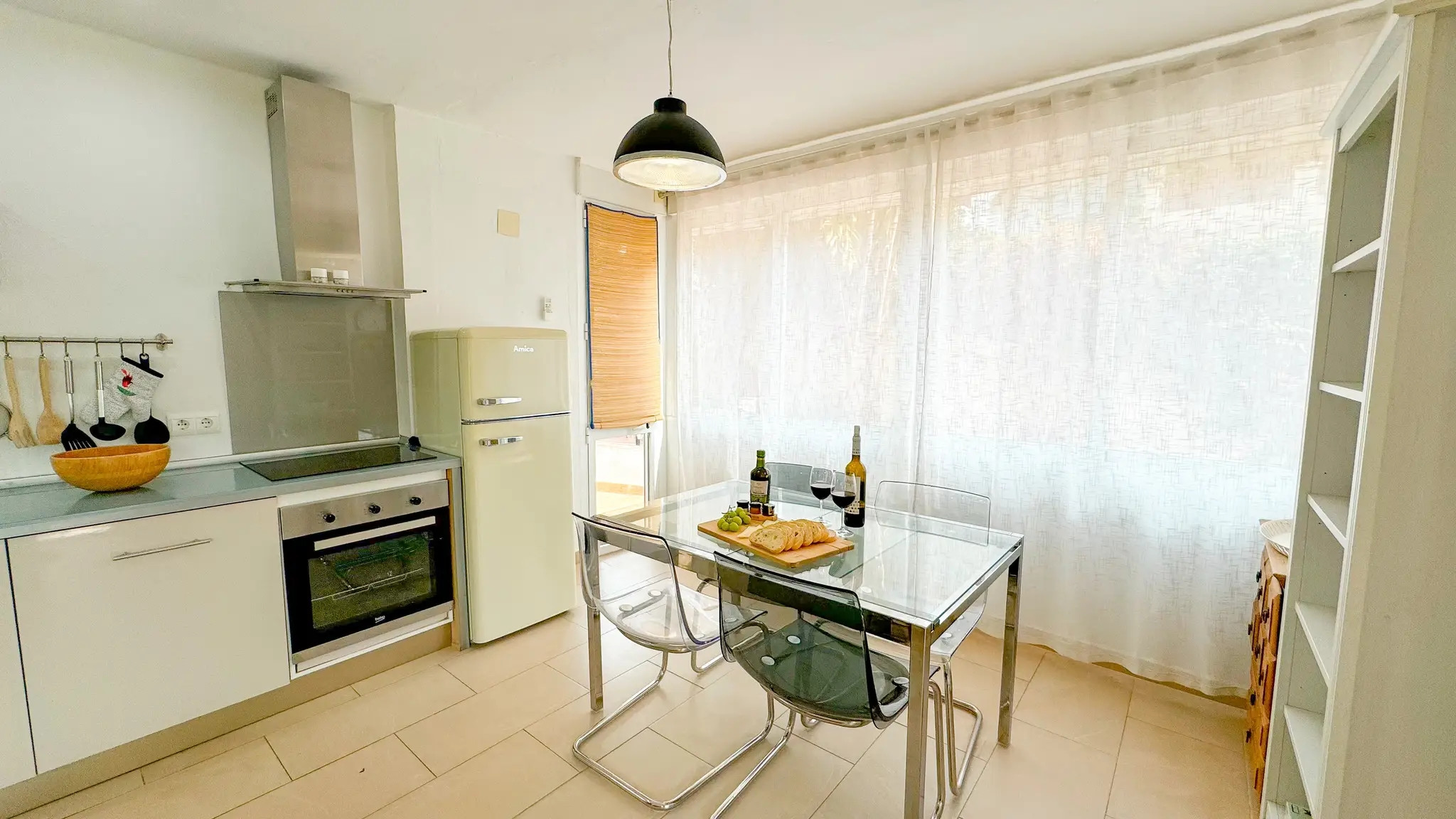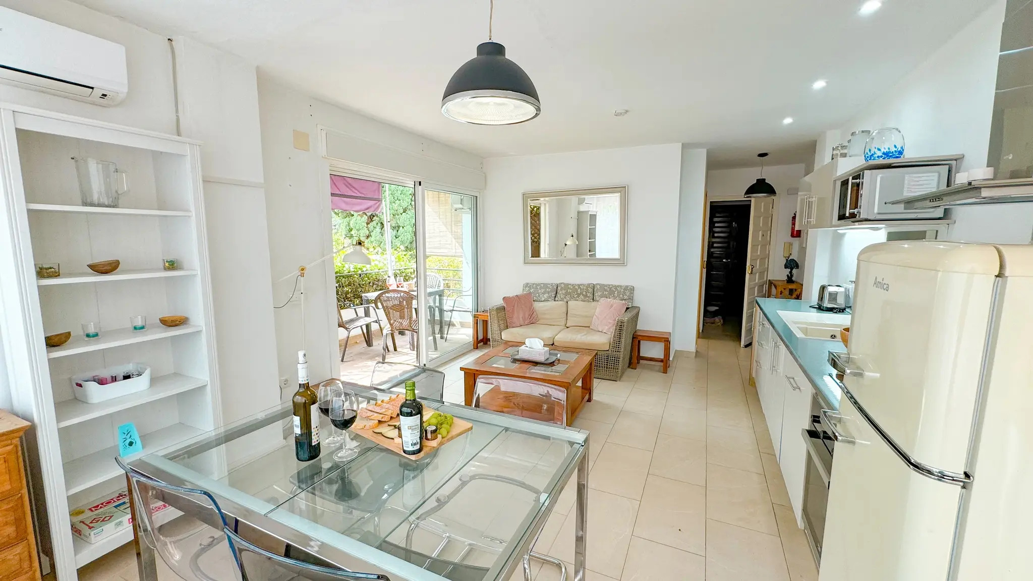 Este apartamento es ideal para aquellos que buscan unas vacaciones en la playa y tiene la ventaja adicional de una piscina comunitaria y un aparcamiento comunitario.