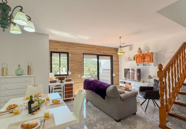 Impresionante dúplex en el Complejo Montemar, su alojamiento ideal para explorar Frigiliana. Perfecto para parejas, familias o amigos que buscan un retiro tranquilo con impresionantes vistas a la montaña y el Mediterráneo, a solo un corto paseo de las icónicas calles encaladas de Frigiliana.