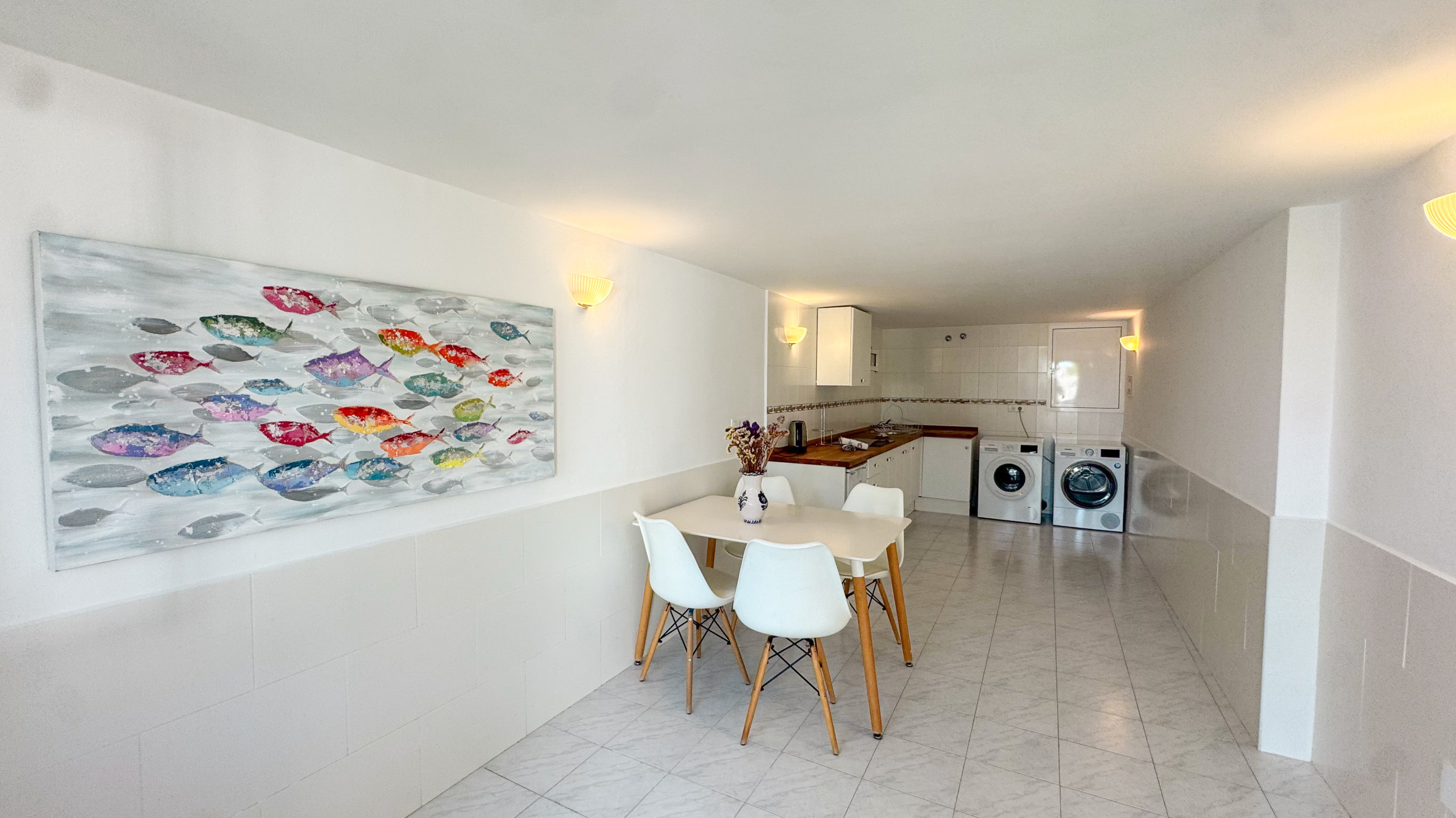 Desde el solárium hay una habitación extra con dos camas dobles, un baño con ducha de paseo y un área de lavandería.