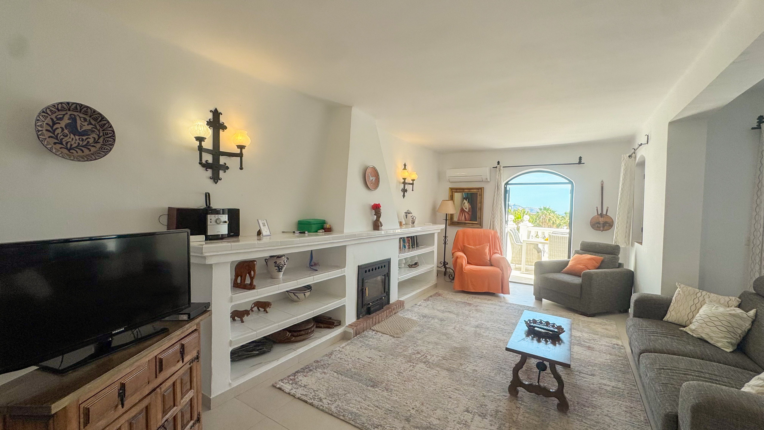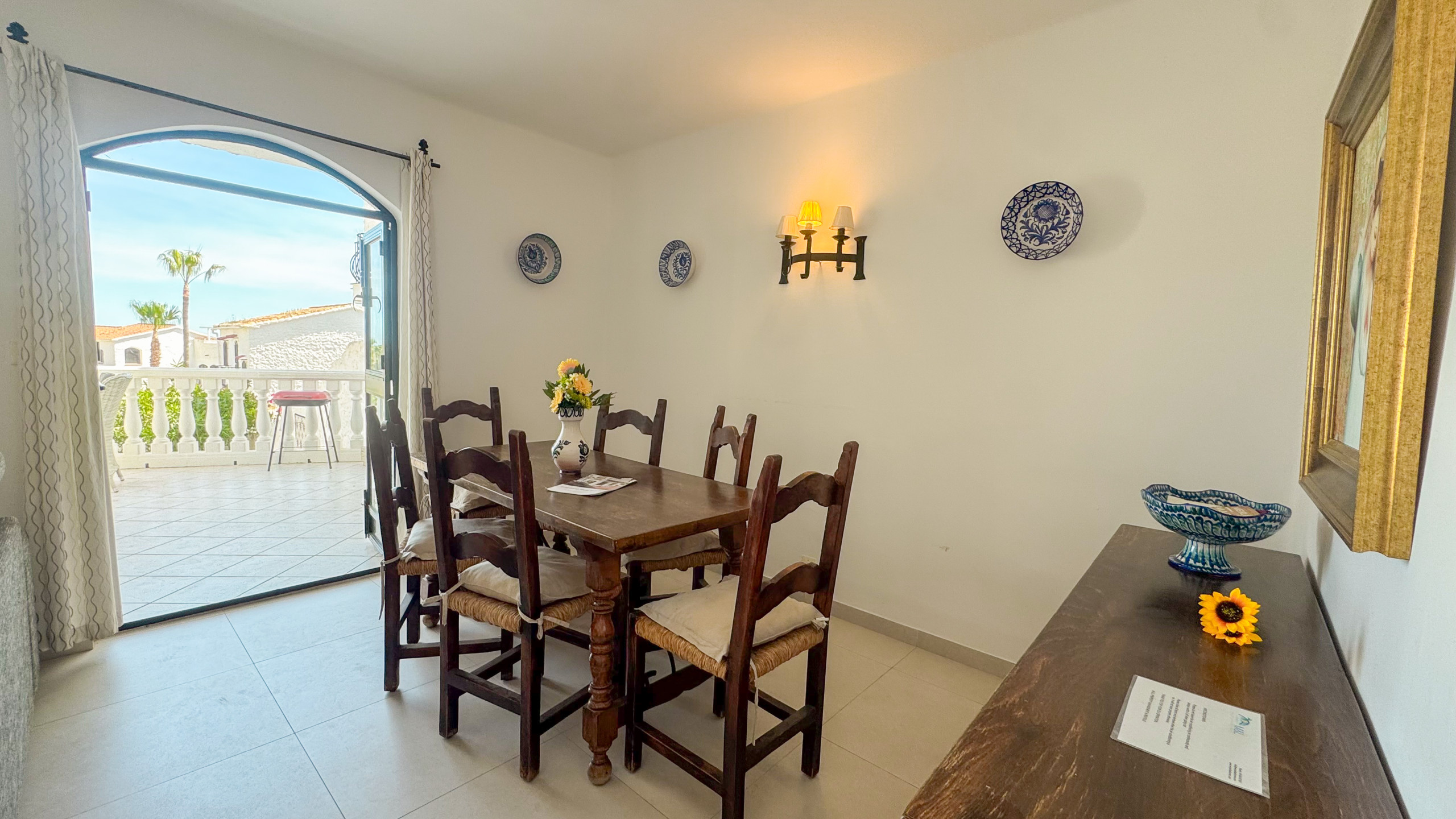 Dispone de jardín, mobiliario jardín, parcela vallada, terraza, lavadora, barbacoa, chimenea, plancha, acceso internet (wifi), secador, balcón, calefacción bomba de calor, aire acondicionado, piscina comunitaria, 1 Televisor.