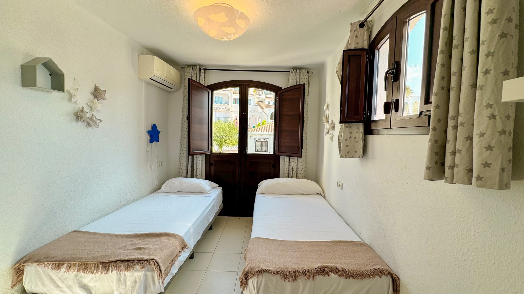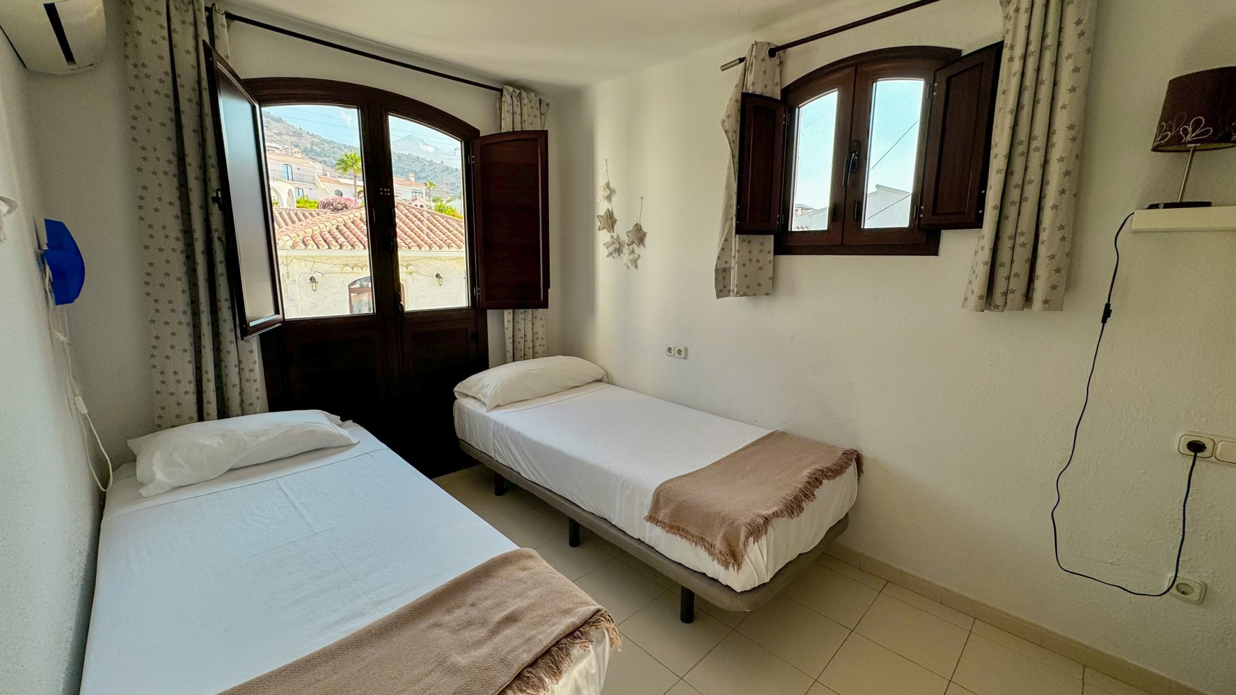 En la segunda planta hay dos dormitorios; el principal con una cama de matrimonio con acceso a un balcón y el segundo con dos camas individuales y también con acceso a un pequeño balcón. Un baño familiar con ducha de paseo.