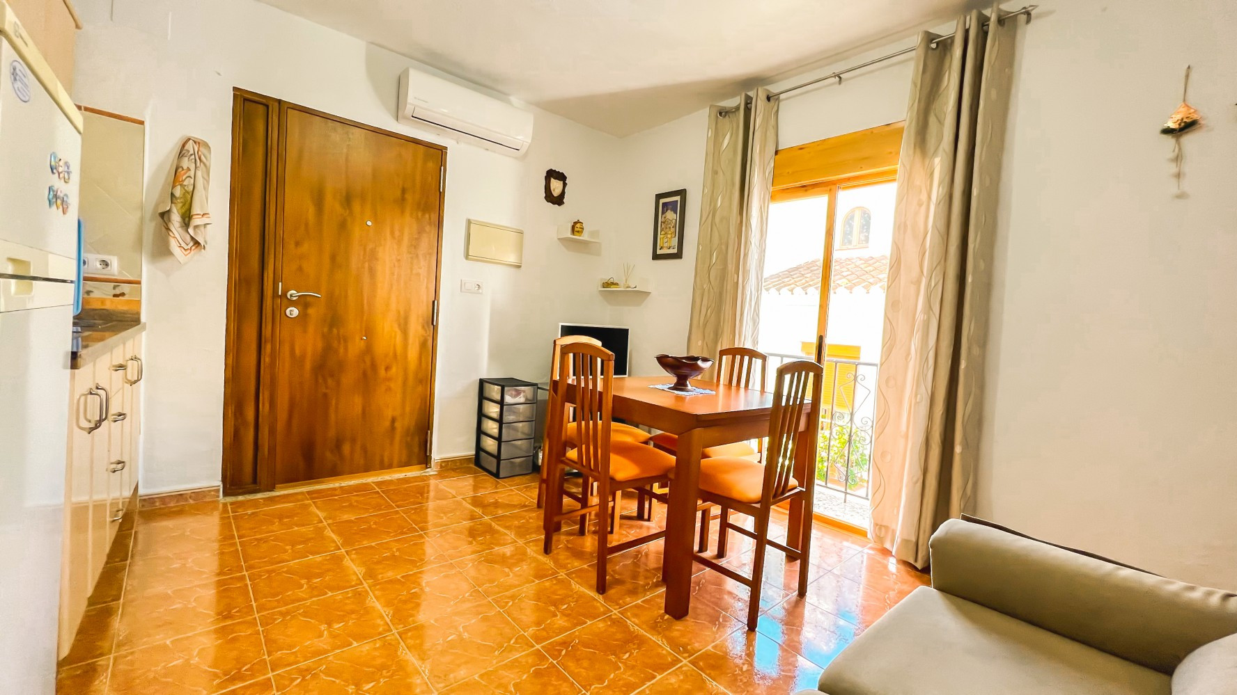 La cocina tiene aire acondicionado instalado.