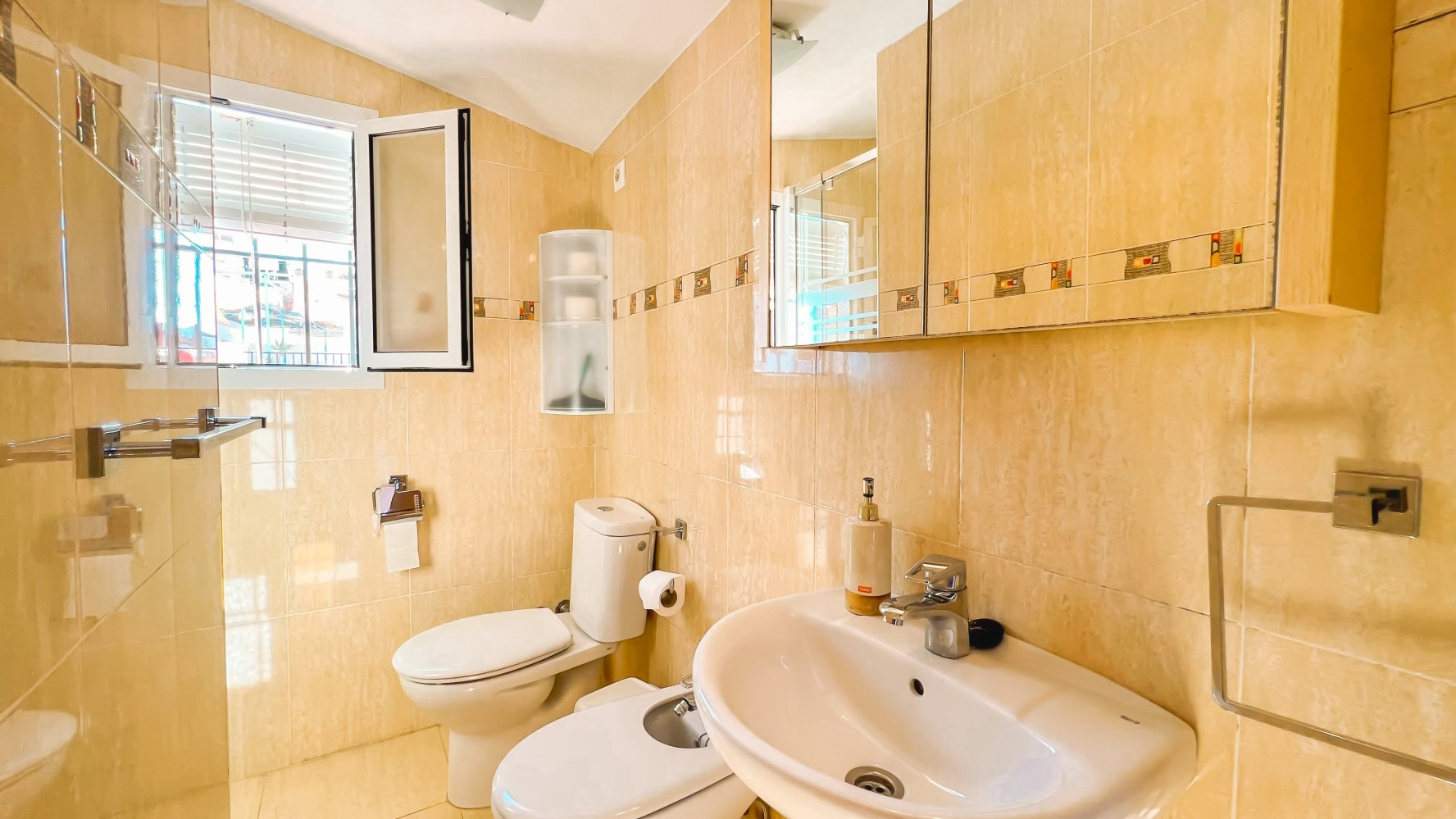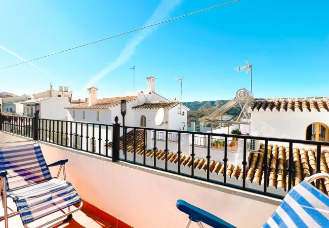 Aventúrate a la azotea para descubrir un baño completo con ducha y una terraza privada de buen tamaño con vistas al hermoso pueblo de Frigiliana.