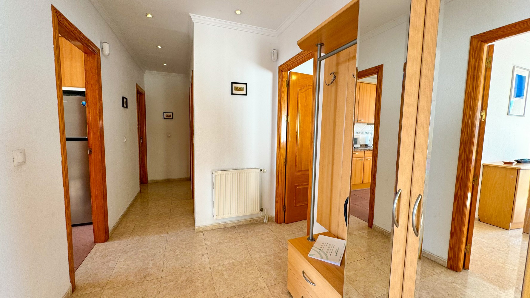 La planta inferior se abre a un pasillo con una salida a otra terraza, dos dormitorios espaciosos y un segundo baño.