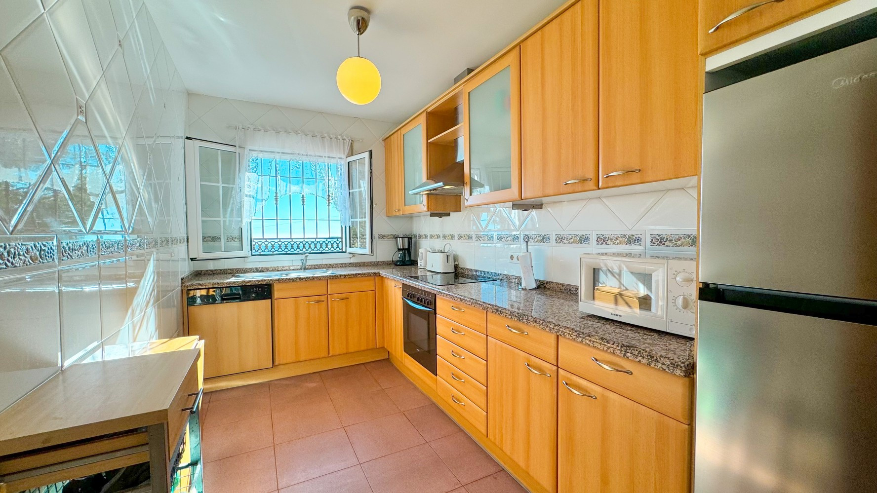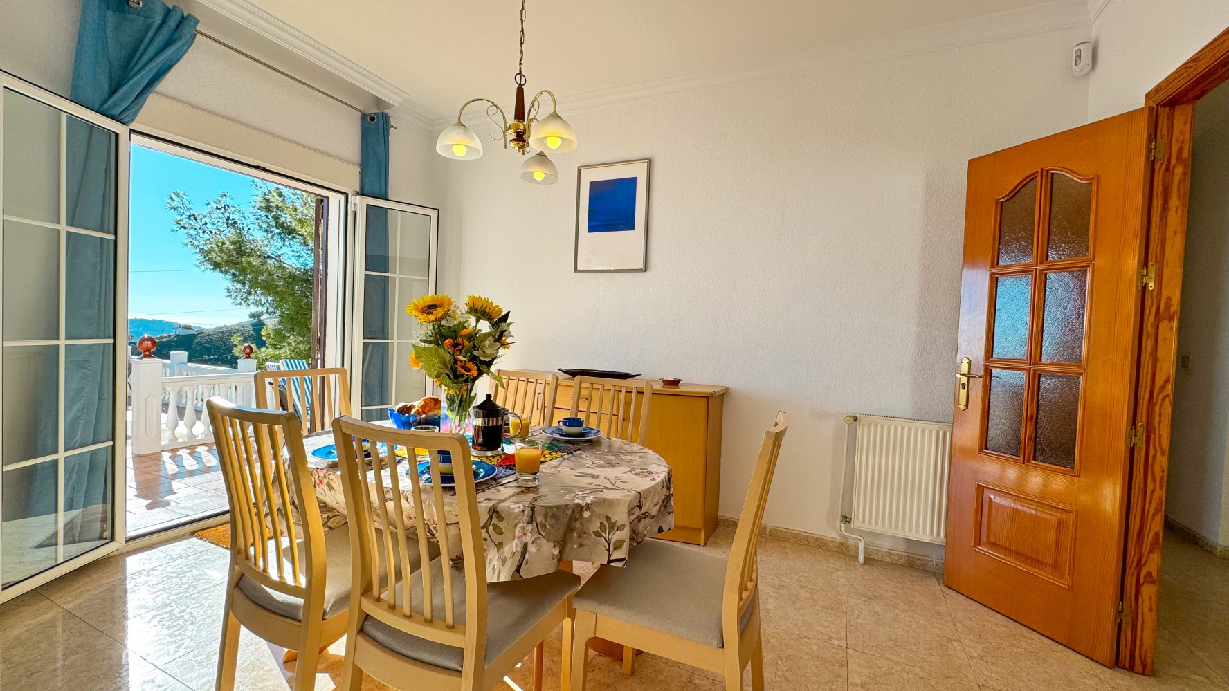 Acceda a un amplio salón-comedor con chimenea, creando un ambiente cálido y acogedor. El acceso directo a la terraza le permite disfrutar de impresionantes vistas. Cocina moderna, independiente y totalmente equipada.