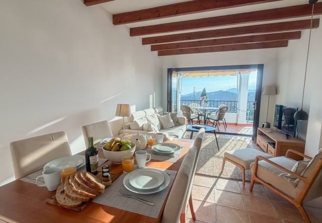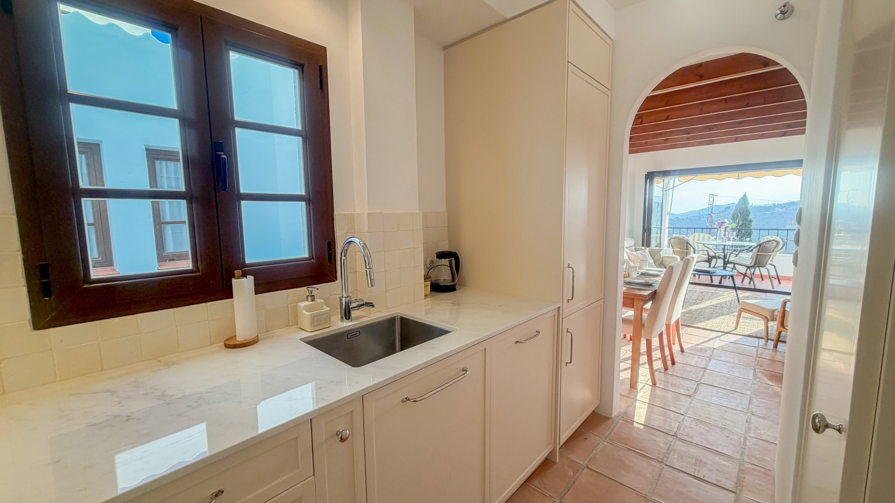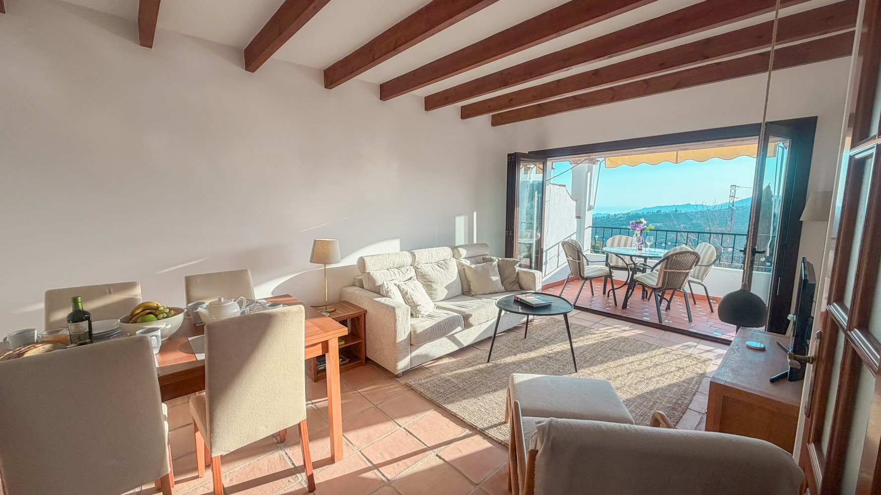 Enjoy this bright apartment with private terrace on Avenida Carlos Cano, just a short walk from Frigiliana’s charming old town, shops and cafés. Relax in the spacious living area or dine outdoors with beautiful views of the village, mountains and sea. Features a fully equipped kitchen, 2 comfortable bedrooms (one en-suite) and 2 bathrooms. Just 15 min drive to Nerja and its beaches. Non-smoking. Book now and enjoy authentic village living!