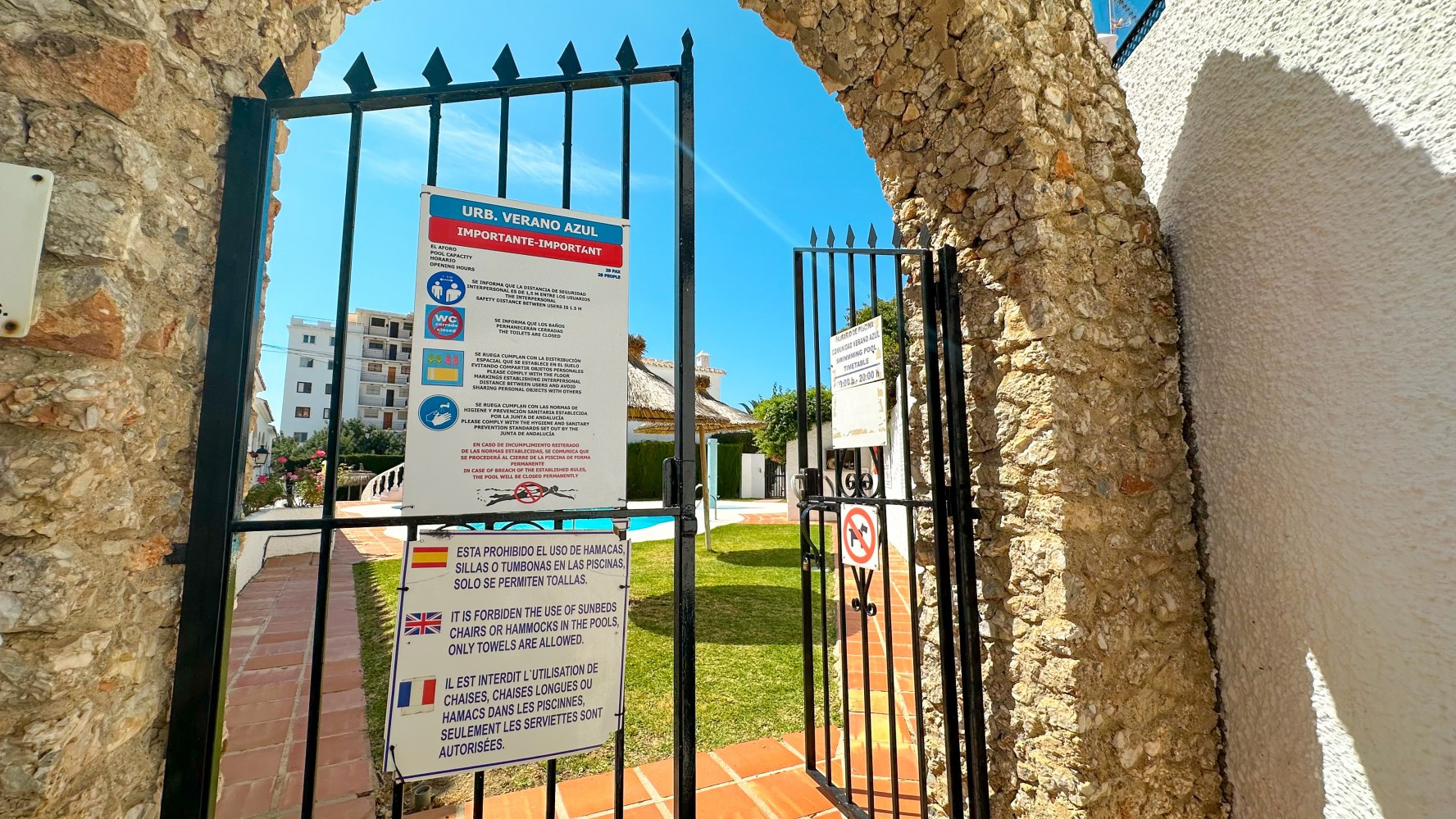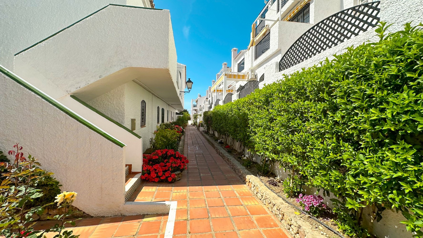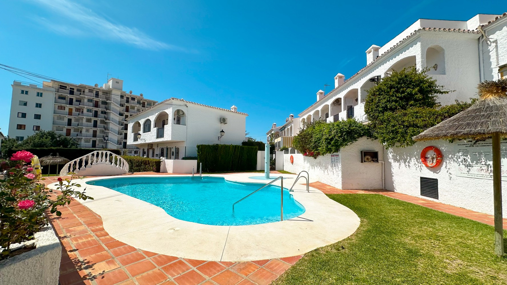 Step outside onto the south-facing terrace, where a built-in barbecue creates the perfect setting for alfresco dining while enjoying Nerjas warm climate. The Verano Azul complex boasts two beautiful communal swimming pools surrounded by lush tropical gardens, offering a tranquil oasis for relaxation.