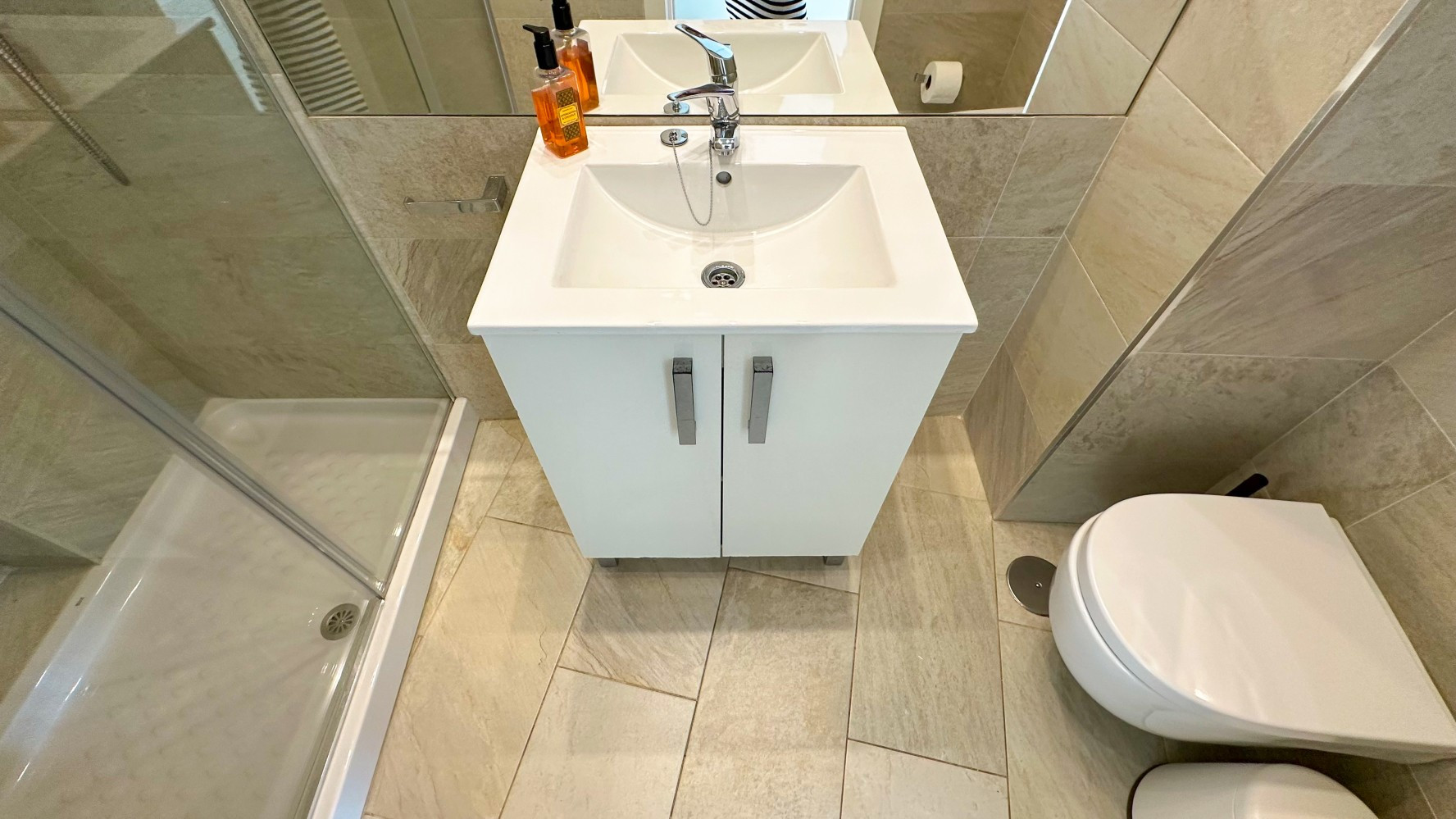 The highlight of this apartment is undoubtedly the private south-facing roof terrace, boasting breathtaking views of the sea and offering the perfect spot to bask in the sun or enjoy al fresco dining.