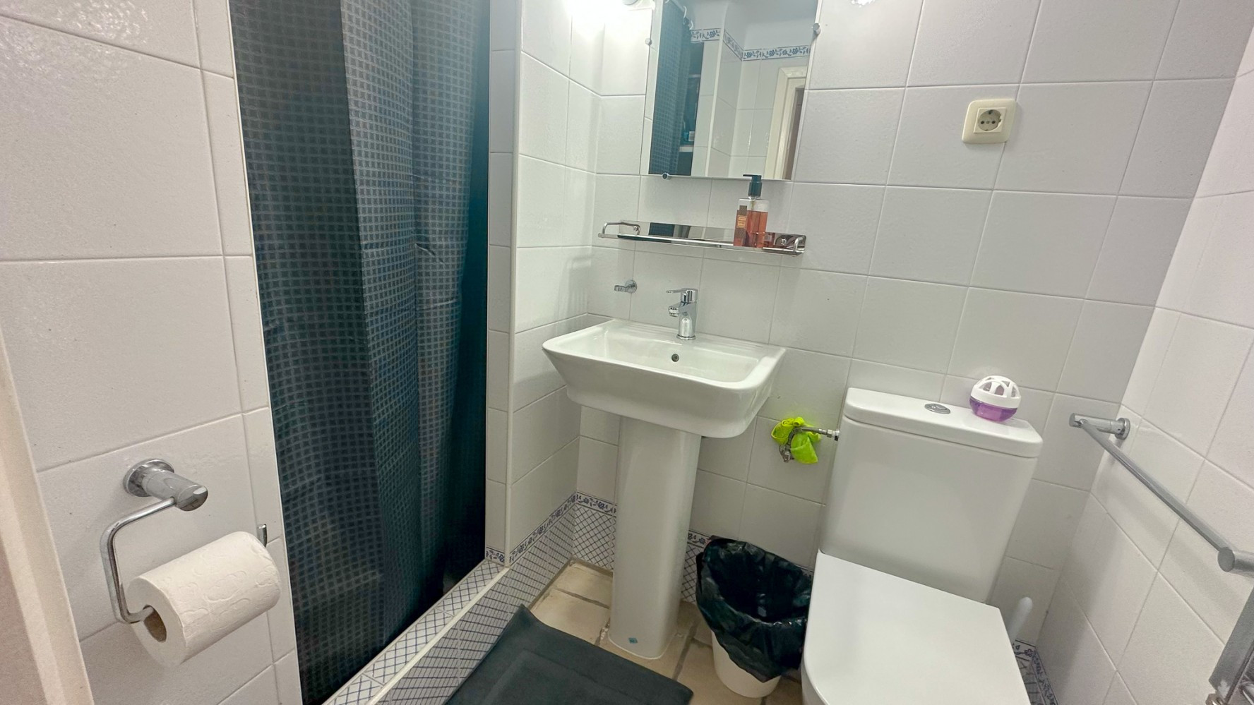 Up some steps there you will find the shower room.