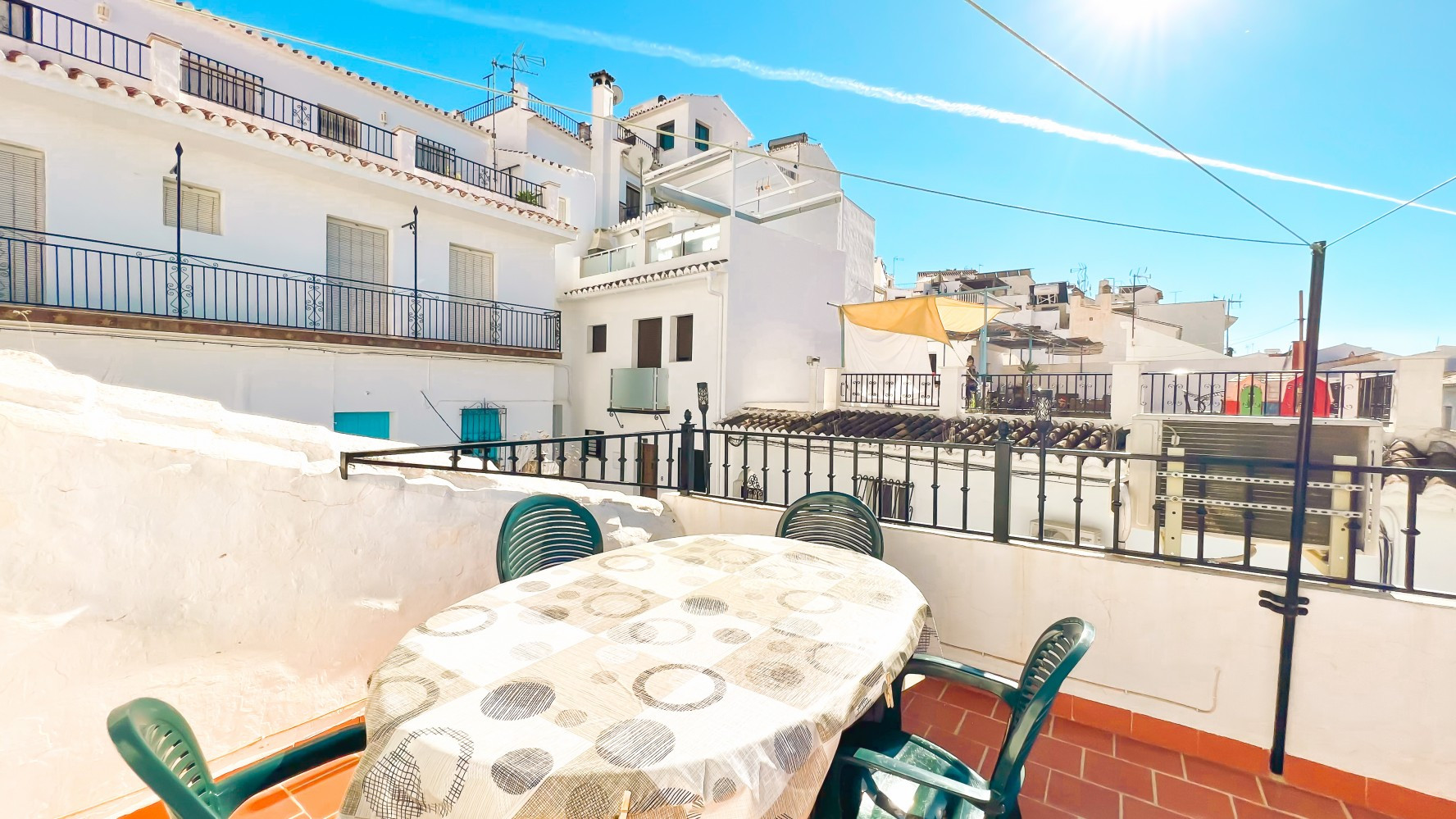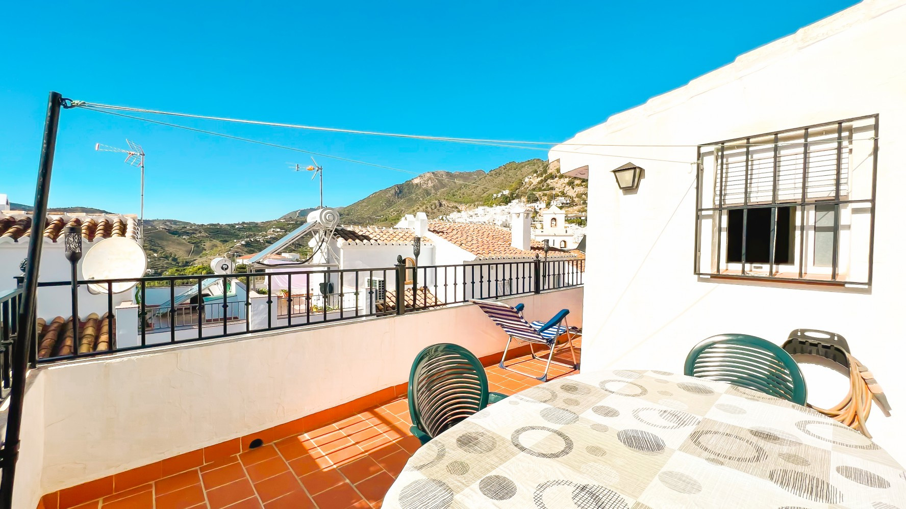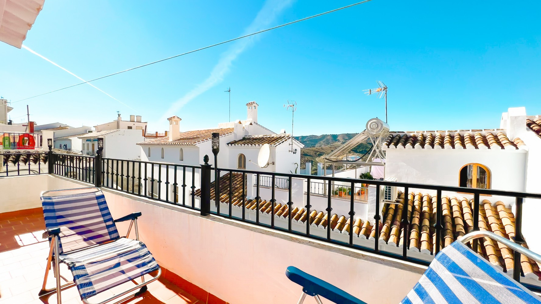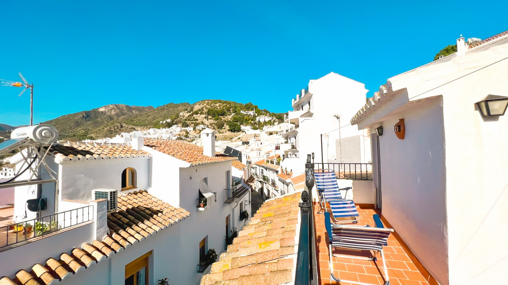 Venture to the rooftop to discover a full bathroom with a shower and a private well sized terrace overlooking the beautiful village of Frigiliana.
