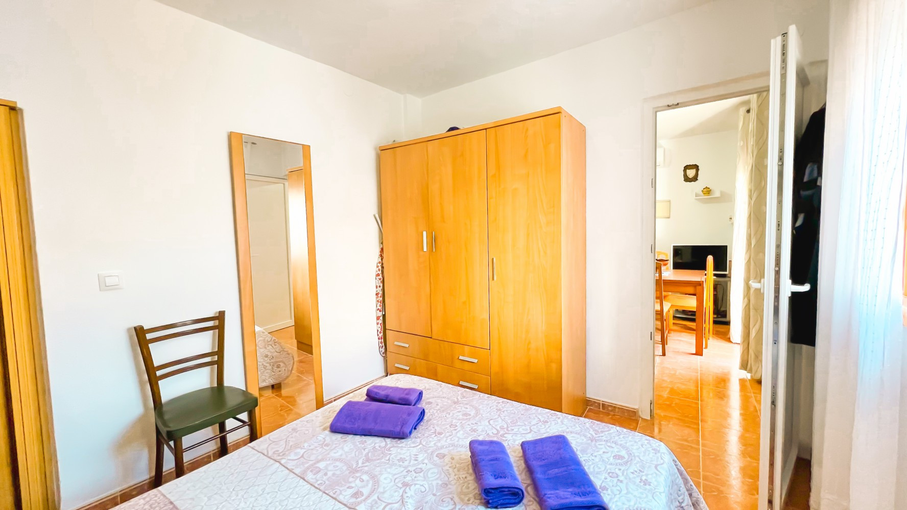 From the living room, you access the double bedroom, complete with a double bed and wardrobe.