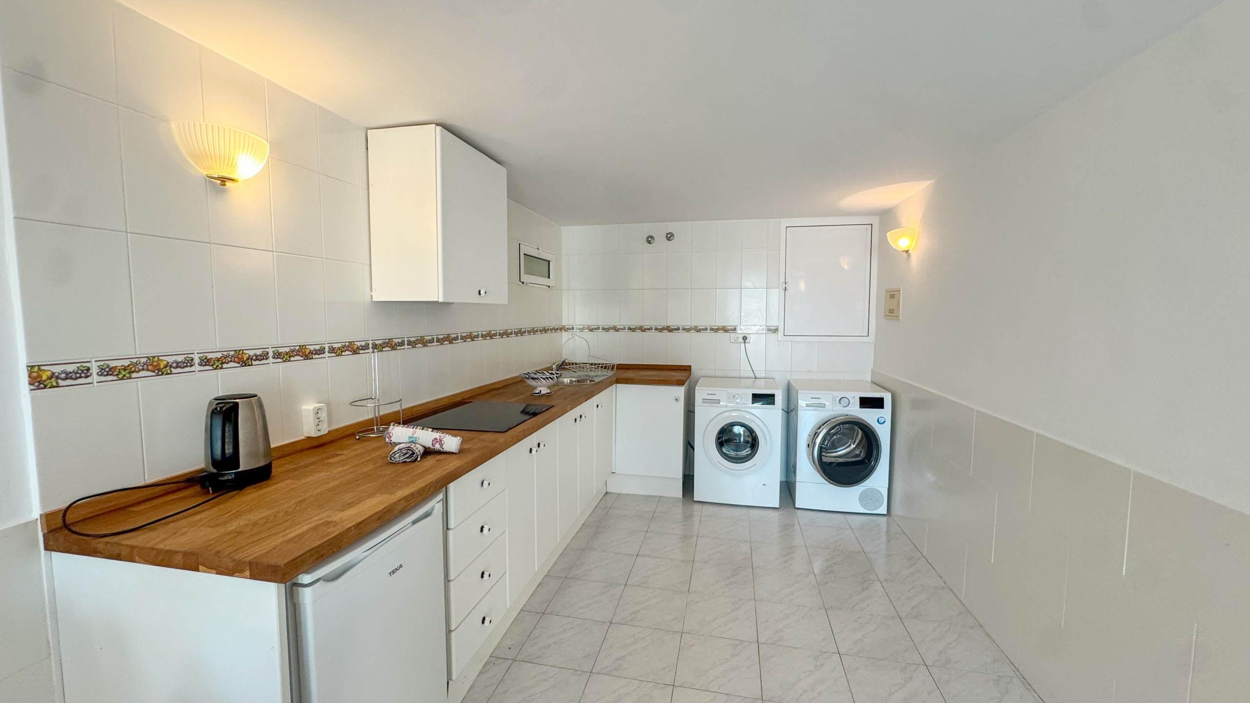 From the solarium there is an extra room with two double beds, a toilet with a walk-in shower and a laundry area.