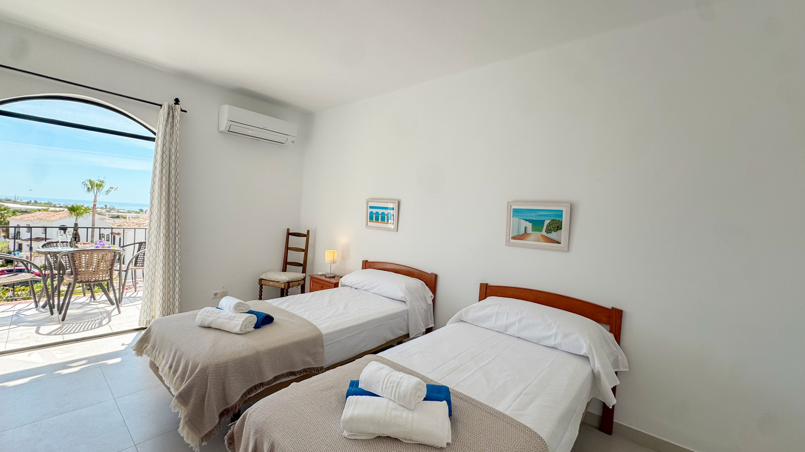 On the second floor there are two bedrooms; the main one with a double bed with access to a balcony and the second one with two single beds and also with access to a small balcony. One family bathroom with a walk-in shower.