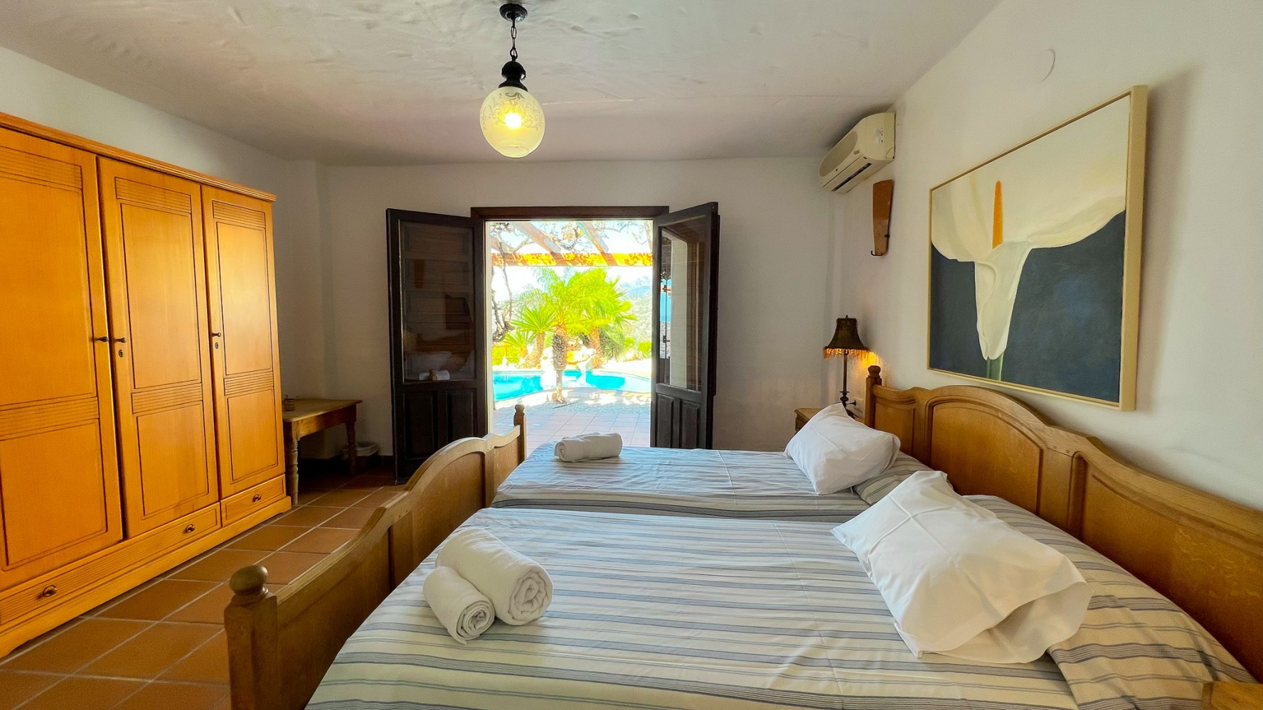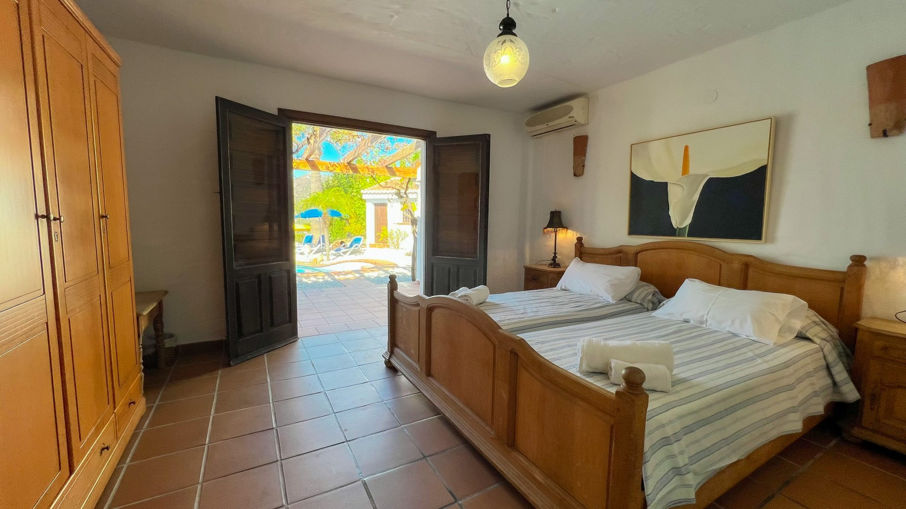 Featuring two bedrooms and two family bathrooms with bathtubs. The main bedroom offers direct access to the terrace and the private swimming pool.